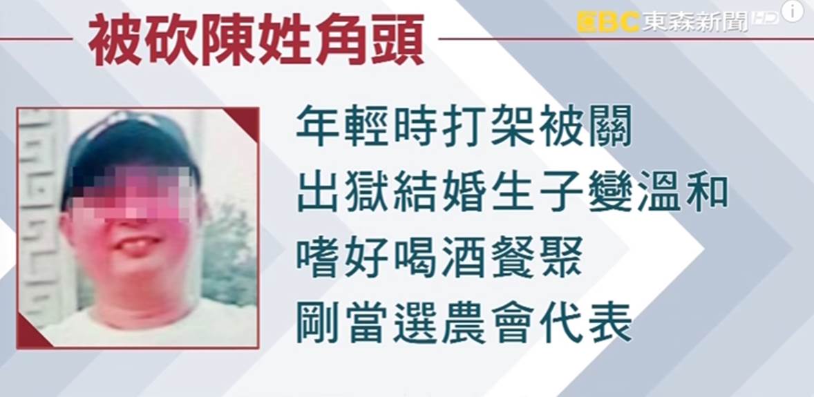 據了解,被砍的陳姓角頭52歲,個子不高,到哪都是面帶微笑,年輕時在村子裡就小有名氣,年紀大了生活圈子也都以村子裡為主,因為喜歡交朋友,常到村子裡的卡拉ok店唱歌,幾乎村子裡的人沒人不知道他。