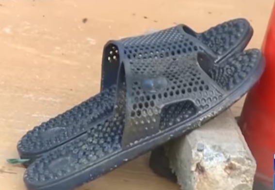 ▼死者兒子指認該拖鞋為父親外出時所穿(圖/東森新聞)