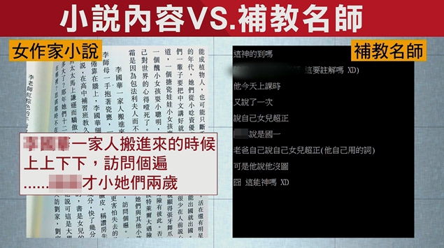 ▼網友推測補教老師的女兒和女作家的年齡差距相符(圖/東森新聞)