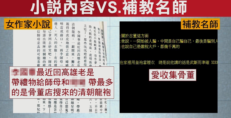 甚至書中提到,補教老師帶禮物回家,最多的是從骨董店搜來的清朝龍袍,和補教名師上課透露私底下愛收集骨董的興趣也一模一樣。