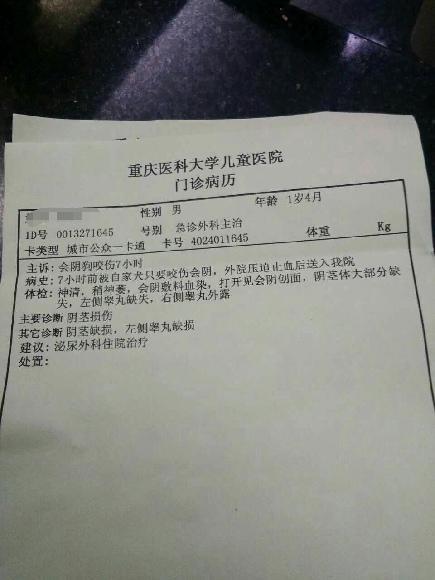 根據醫院開具的門診病歷顯示,男嬰入院時精神狀況非常差,但神志清醒,其左側睪丸有缺失,右側睪丸則外露,診斷結果為「陰莖損傷」。男童目前已被轉入泌尿外科進行住院治療,並接受了第一次手術。