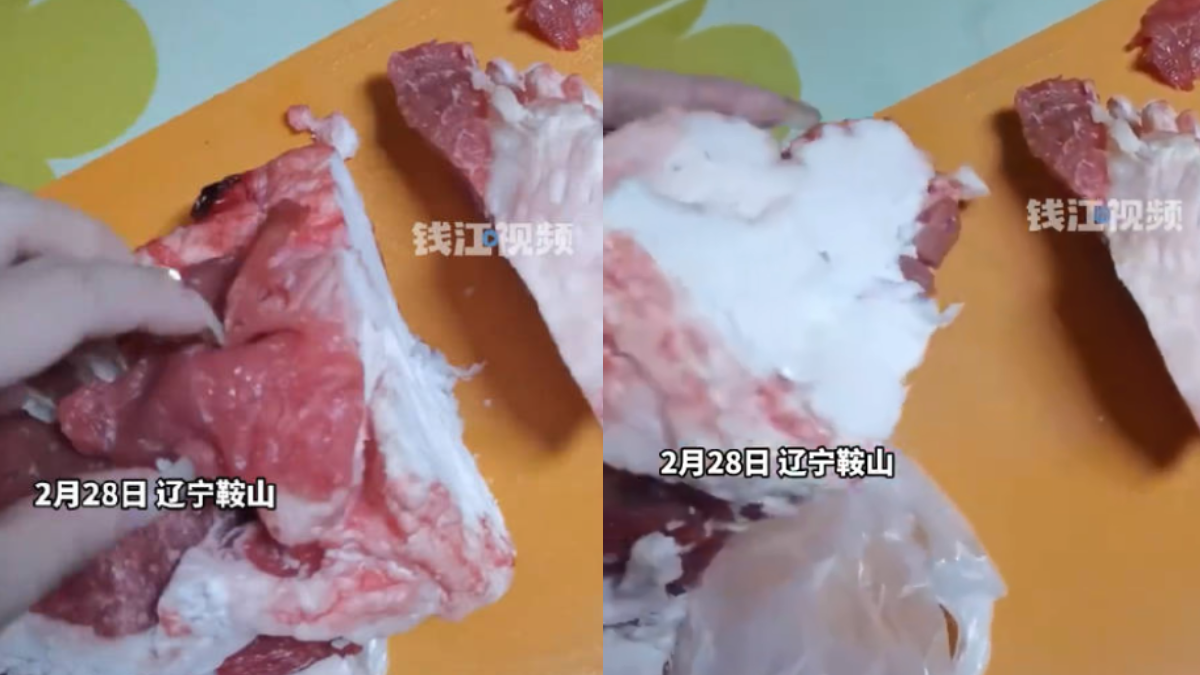 即/超市牛肉竟是「瘦肉包牛油」 陸女切開一看氣炸