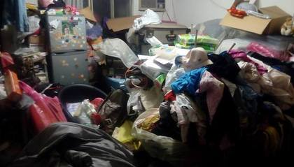 照片中清晰可見,屋內通道只留一小處,只可容納一人行走,許多雜物層層堆疊,遍布各個角落,不時還出現疑似未清洗的衣物及「已未使用」的東西,或是一袋袋的黑色大垃圾袋所包裹住的大型物;而廚房中甚至將電鍋放在地上,連疑似裝水果的透明塑膠盒仍未丟棄,且還有不少已有「年紀」的瓶瓶罐罐。