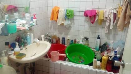 男網友表示,房子目前只有女子和母親同住,兩人卻沒有「衛生」觀念,所到之處盡是蟑螂和老鼠等生物,而浴室的臉盆、馬桶等處皆卡滿污垢。