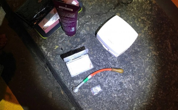 ▼邱男包包中的毒品與吸食器。(圖/翻攝畫面)