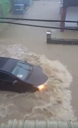 颱風重創南台灣,恆春半島可說是泡在水裡,災情相當慘重,水淹家園,民眾苦不堪言,馬路更是變成「河道」。有網友在海棠「侵門踏戶」這天,意外捕捉到