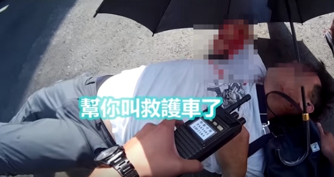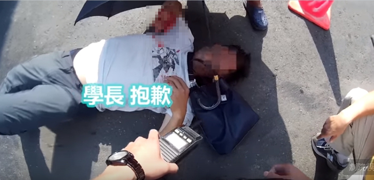 ▼警察發現被撞飛的是學長後,震驚表示道歉