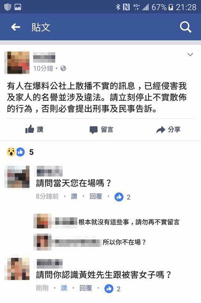 ▼其中一名當事律師在爆料公社揚言對不實指控提告。圖/爆料公社