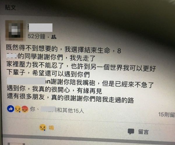 ▼少年在臉書留下遺言。(圖/翻攝畫面)