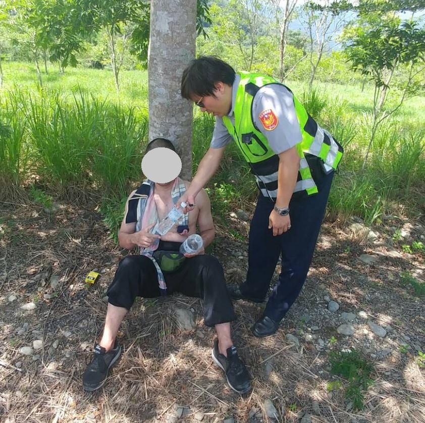 男子一路上都沒水喝,加上天氣炎熱,實在是走不動了才會坐在樹下休息,還出現脫水、中暑症狀,看到員警出現彷彿看到救星,直呼「幸好有警車經過」,員警擔心這位男子又會「原路走回」,便協助將他送往池上火車站搭乘計程車,確保男子平安到家。