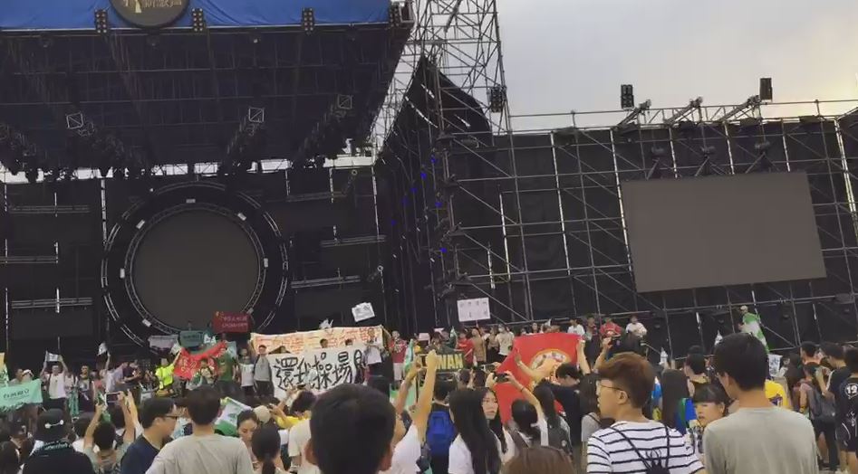「黑箱作業」,不但不顧學生使用權益,還破壞剛整修好的田徑場,導致學校喪失舉辦國際賽事的資格,便於演唱會當天抗議並霸占舞台,甚至爆發流血衝突。