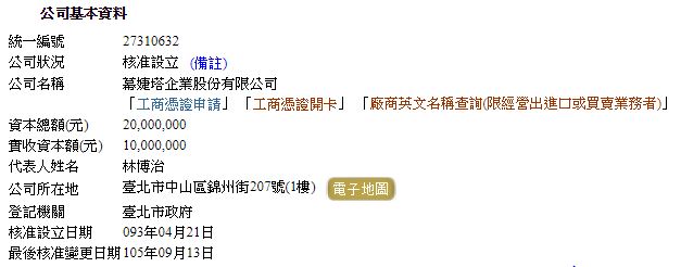 ▼幕婕塔企業股份有限公司登記資料。(圖/翻攝自