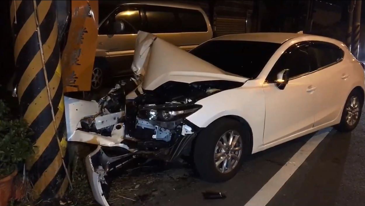 高雄市橋頭區今天(5日)凌晨發生一起自撞電線桿車禍!32歲的林姓女駕駛載著2個月大的兒子,以及一名呂姓友人從台中到高雄玩;回程要先繞去載朋友的男友時,行經橋頭區典昌路,因天色昏暗、路況不熟,車子一路往右偏,接著就撞上電線桿,撞擊力道之大,車頭整個凹陷,擋風玻璃也破裂,連車上奶瓶都飛落到路邊。
