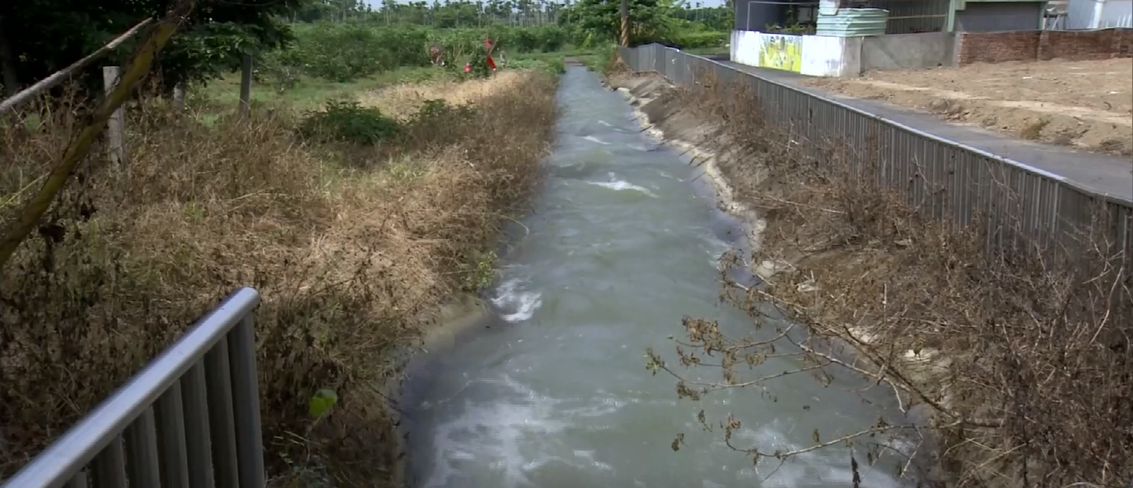 ▼太平圳水流匯集水勢猛烈,稍有不慎就易傳出落水意外。