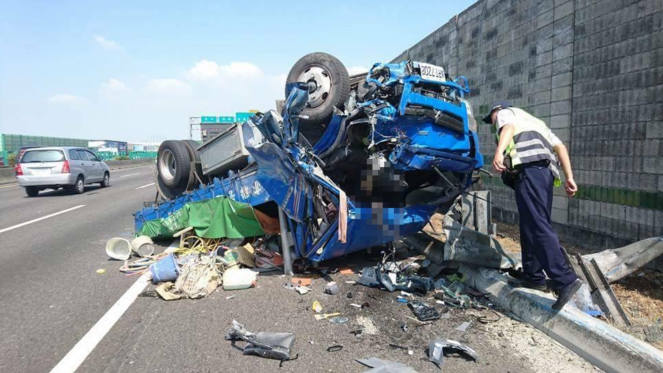 65歲的曹姓駕駛11號上午到雲林工地做完水電工程,就在回程要回彰化員林的途中,在國道一號北上236.5公里處撞上一個掉落的「鑄鐵塊」,失控自撞外側護欄後整輛翻覆,車頭嚴重毀損,曹姓駕駛夾在車內重傷,送醫後不治。