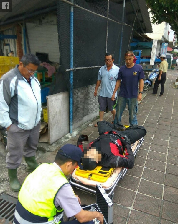 重機車擦撞,撞擊力道之大,重機騎士當場被拋飛十多公尺,但卻有驚無險地幸運「降落」在路過行駛的