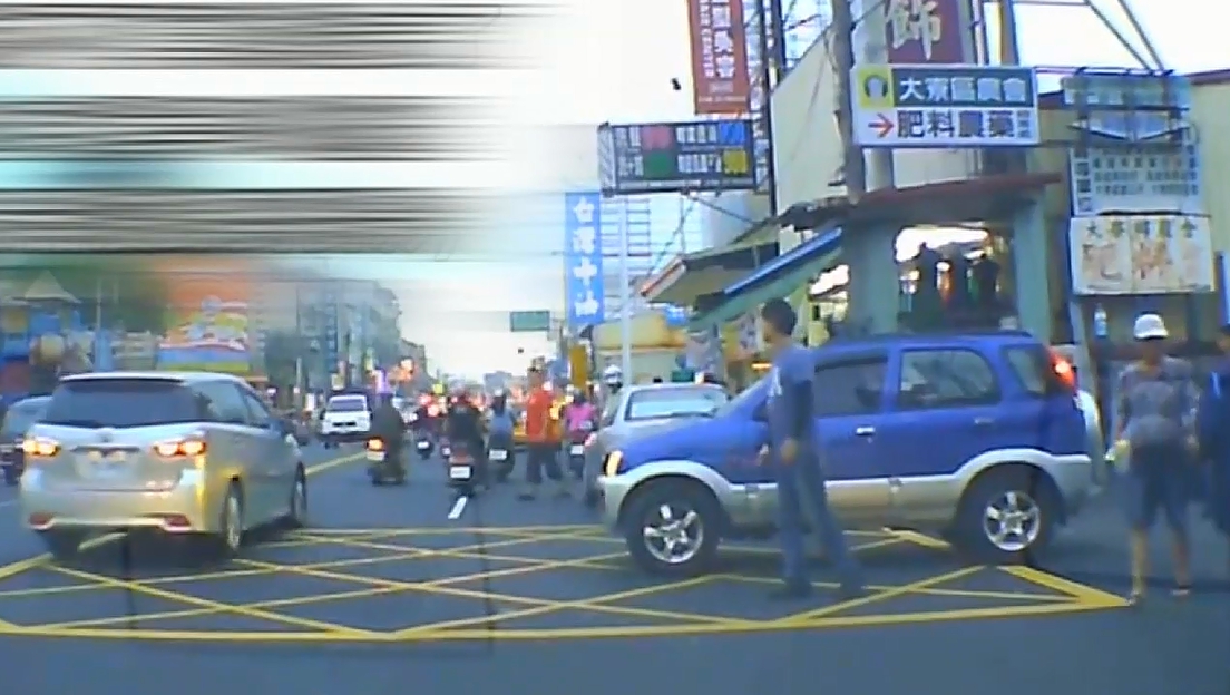 ▼自小客車,前方有輛白色臨停車,又有一台藍色廂型車準備要左轉(圖/翻攝自奇異筆臉書)