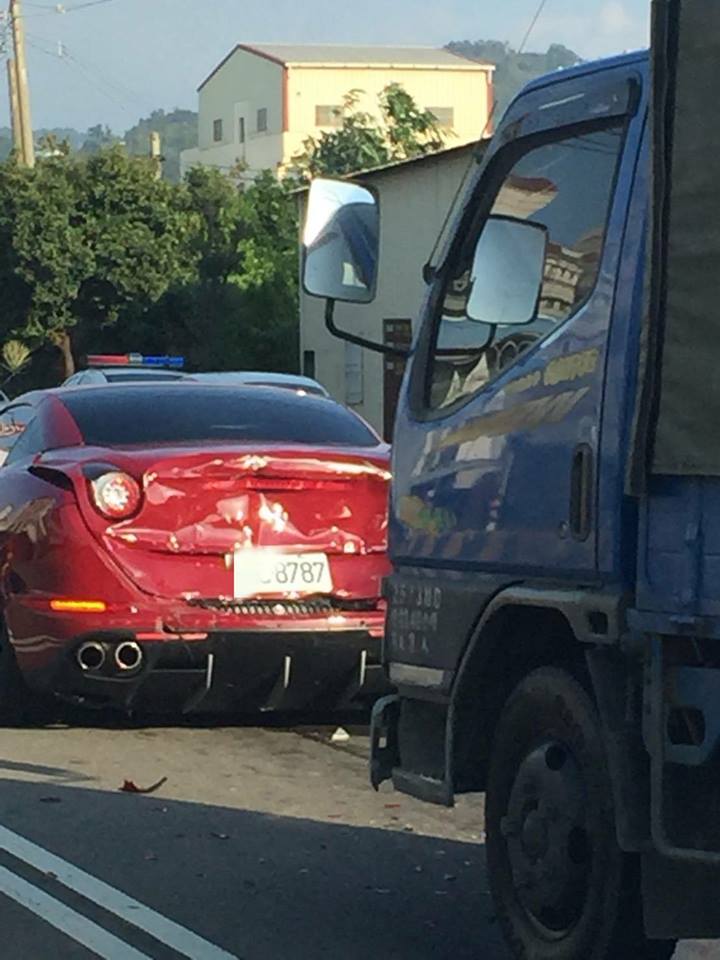 網友把車禍照片分享到臉書社團「台灣新聞記者聯盟資訊平台」,開著市價約1500萬元紅色法拉利California的68歲莊姓男子,在路口等紅燈時,後方49歲張姓小貨車駕駛有看到號誌亮紅燈,想煞車卻踩成油門,直直衝向法拉利,當場「碰!」一聲狠撞,害法拉利的屁股嚴重凹陷變形,叫人不敢直視。