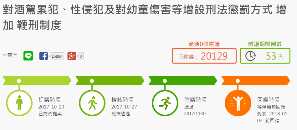 鞭刑制度」,此項提案目前已超過2萬人附議,
