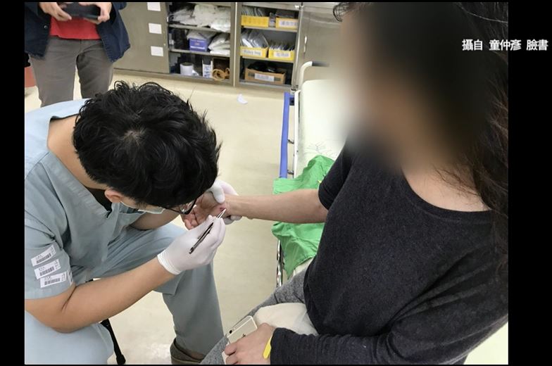 ▼受害空姐手上還有瀝青的痕跡(圖/翻攝自童仲彥臉書)