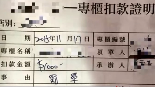 但是櫃姐在人來人往的百貨裡一直找不到,最後是照規定被罰了一千元,還拿了一張千元的收據,等於是被罰了一天多的薪水,讓她覺得好委曲,不過記者實地詢問,員工說並不知道罰款的規定。