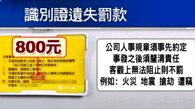 至於這家專櫃在截稿時仍沒有針對罰款的事回應,而勞工局解釋,在公司識別證遺失罰款上,公司人事規章須事先約定,事發之後也必須釐清責任,客觀上無法阻止,例如發生火災、地震毀損或是遭到搶劫或是被偷走,有報案記錄也是不可以處罰,像自己遺失就得付出罰款。