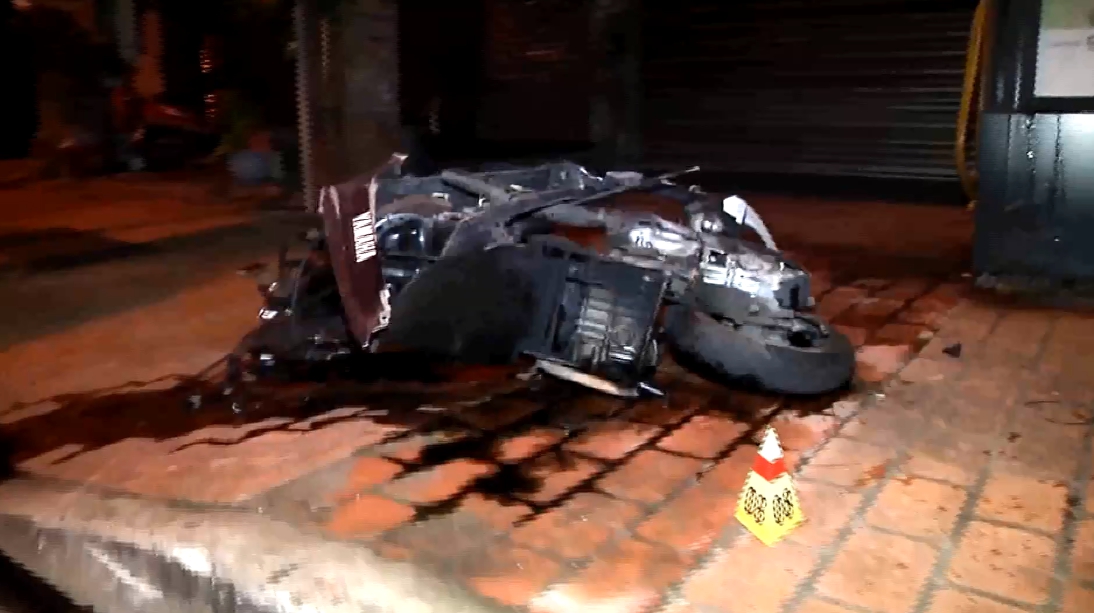 從車禍現場可以看到,滿地的車殼碎片,被撞的機車零件四散,連輪子都被撞斷,路旁還可以看到騎士留下的安全帽。目擊者表示,轎車當時車速非常快,而且是「