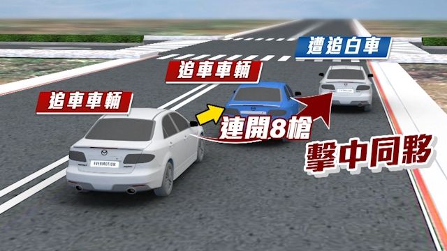 的嫌犯,朝著溫姓男子轎車連開8槍,沒想到其中一槍竟然射中同夥車輛,造成車上一名19歲的郭姓同夥中槍身亡,而溫姓駕駛腿部也中彈受傷,警方目前也正追緝開槍的主嫌,才能釐清犯案動機。