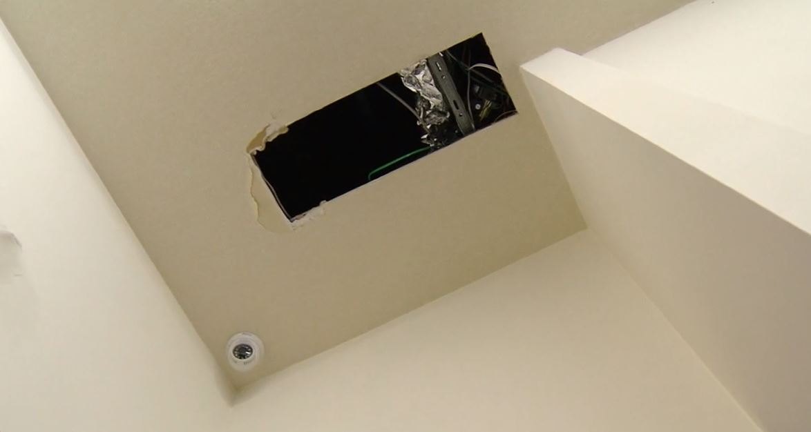 ▼再把天花板切開一個洞。(圖/東森新聞)