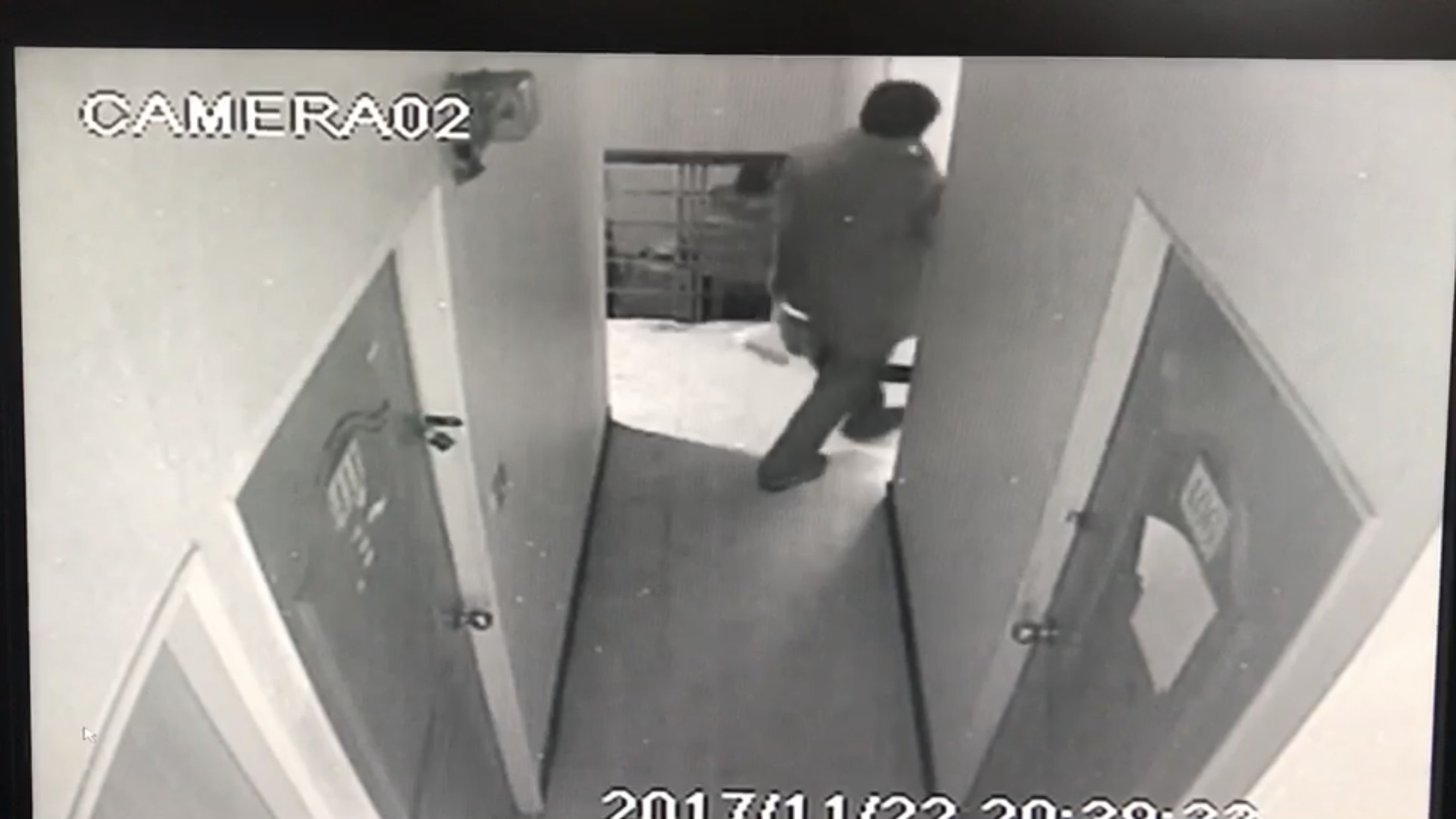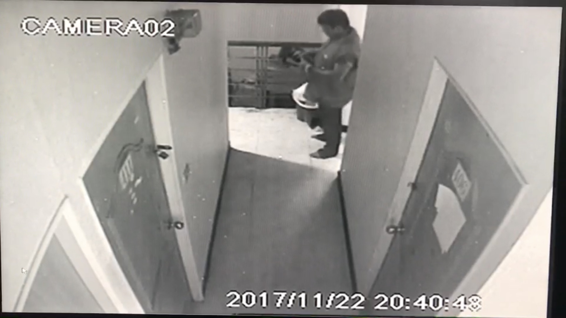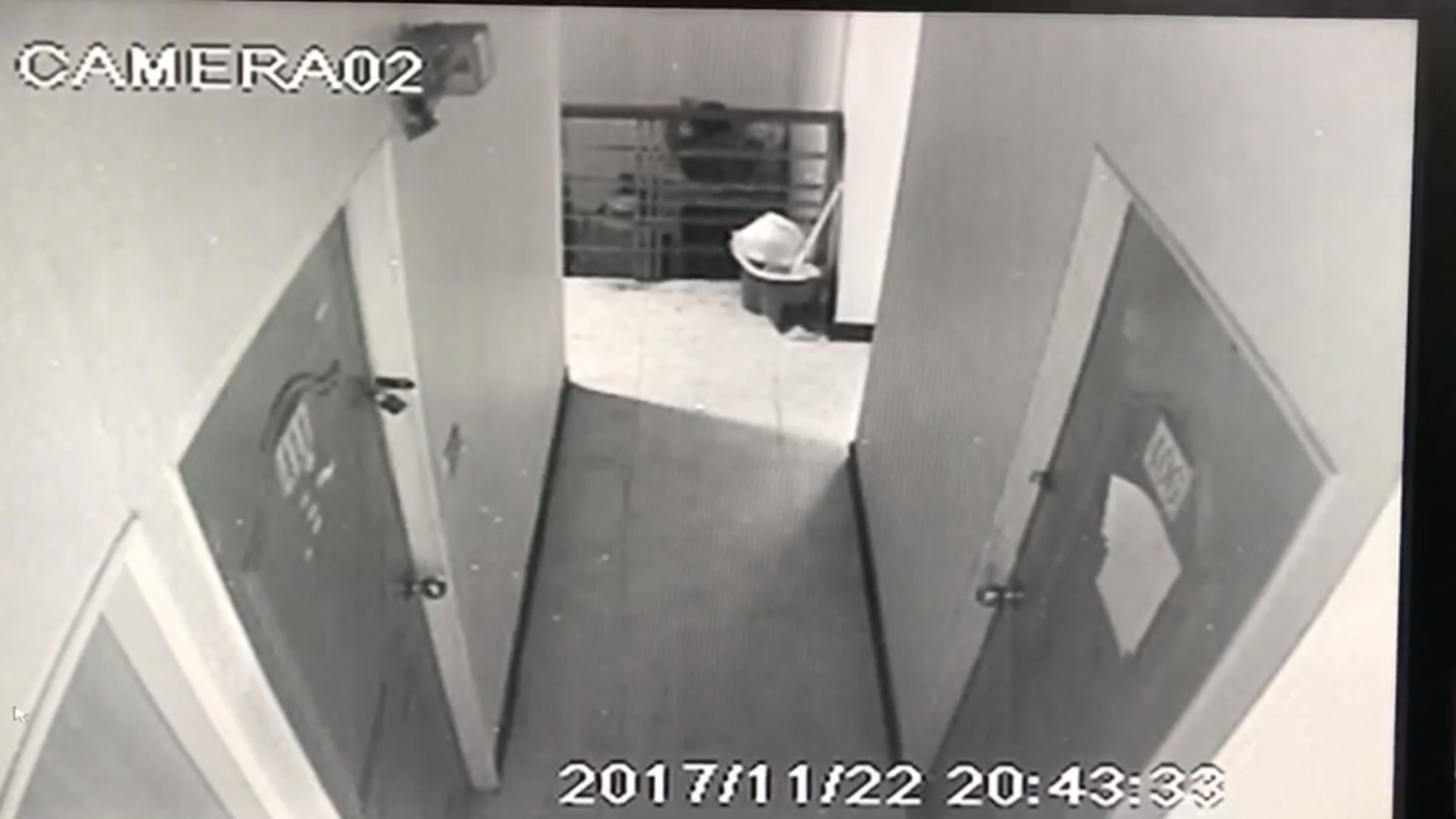 這起分租套房縱火案的內部監視器畫面曝光,畫面中,李嫌先提著便當進到友人房間內,約2分鐘後走出,走向樓梯間,拿起預先藏好的汽油,接著就拿出打火機點燃附近雜物,現場冒出火光後,李嫌隨即逃離現場。