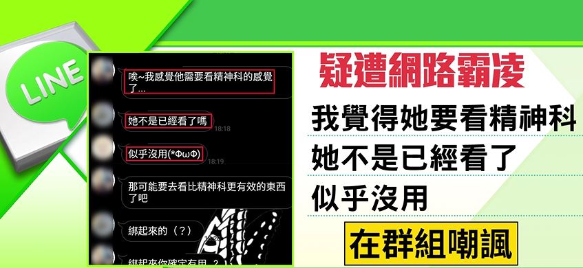 莊媽媽悲痛表示,女兒曾向她求救「快受不了!」並訴苦遭網友故意在群組裡說,「我打算無視她」、「覺得她要看精神科」一句句冷嘲熱諷都故意讓她看到。查閱女兒的對話紀錄,還看到她被同學嗆聲,「你自己有問題才被霸凌」,疑似被同儕排擠讓女兒身心俱疲,甚至出現睡眠障礙、全身發炎的症狀,被網路霸凌的時間長達半年至一年。