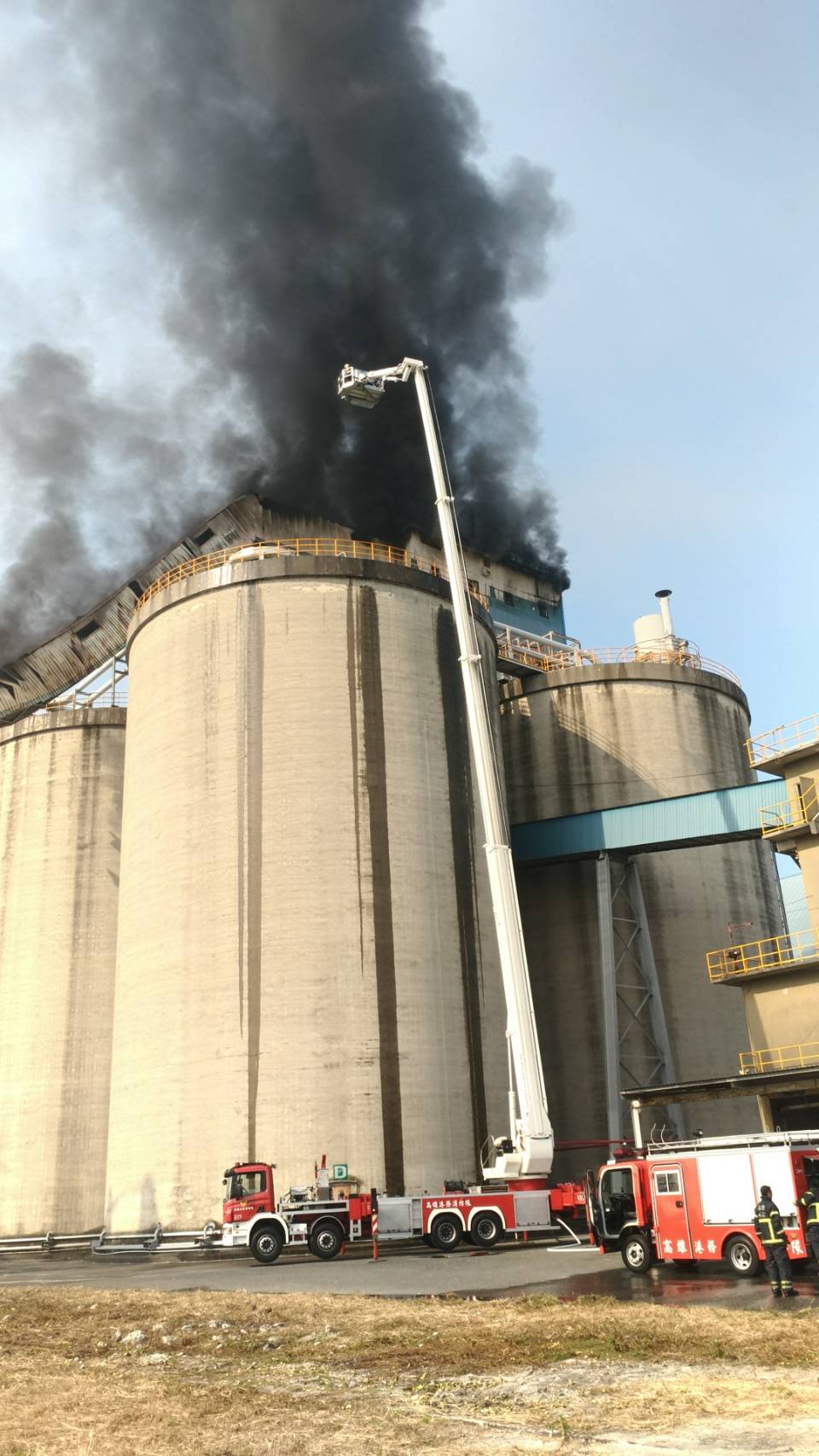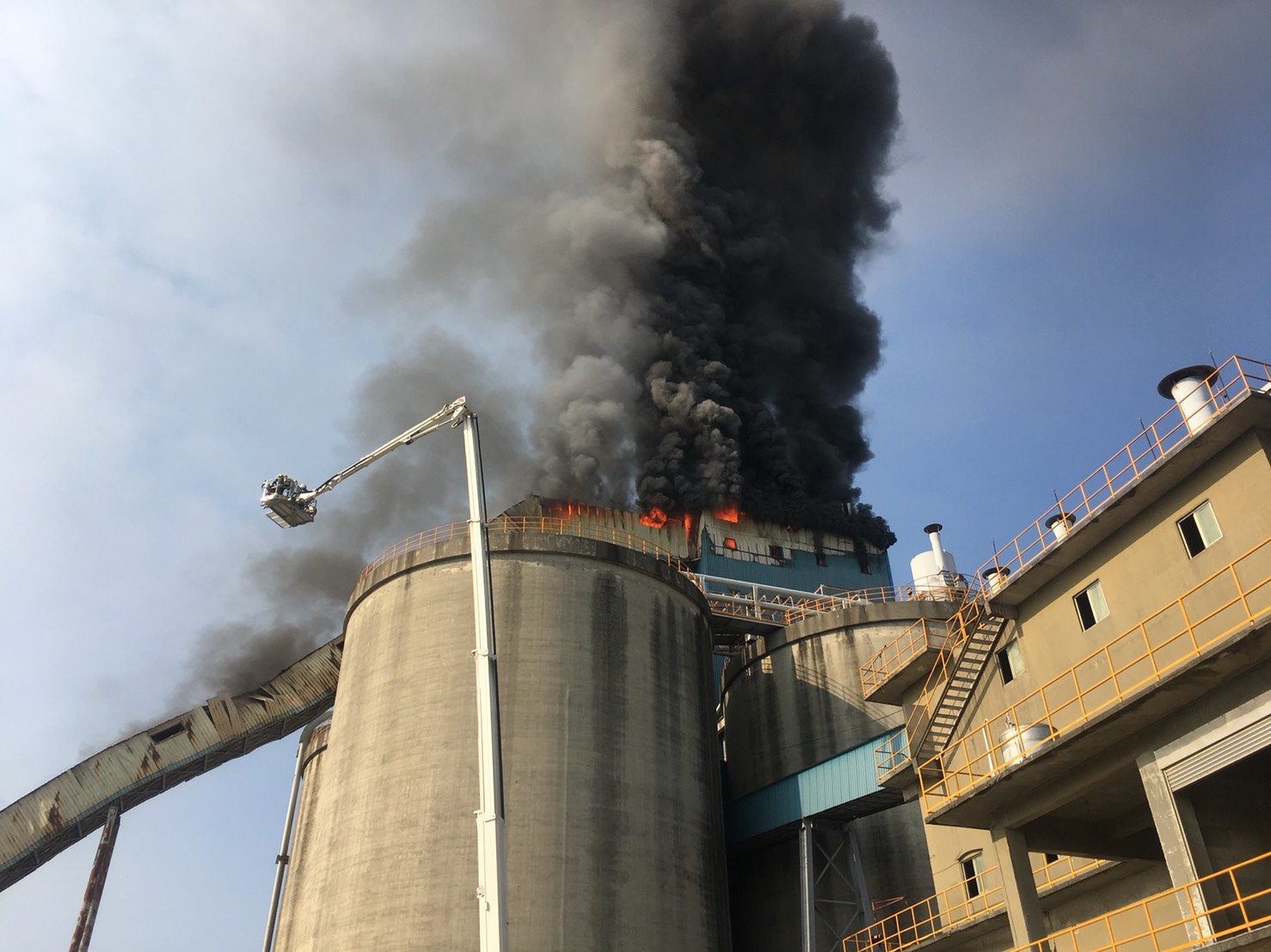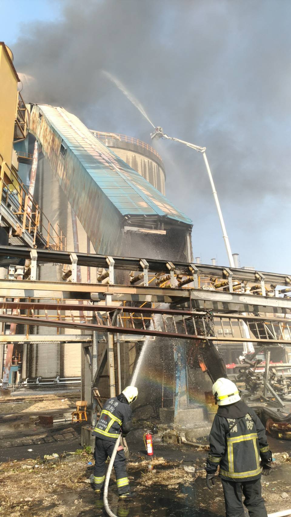 濃煙直竄天際!高港碼頭電信基地台 40米高輸送帶燃燒
