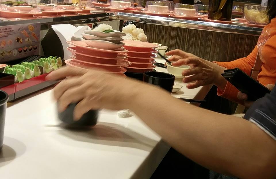 《靠北奧客》PO文,表示日前他到知名迴轉壽司消費,發現隔壁的顧客,桌面上疊了10多盤空的壽司盤,但一旁卻留下一大堆壽司飯,還堆成一座白飯金字塔,原PO不解的表示,若是只想吃生魚片不想吃壽司,那何必要到壽司店用餐,更生氣的大罵「有錢也不是這樣個吃法吧!?」
