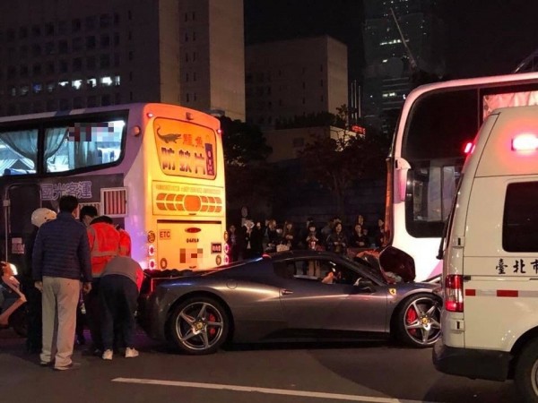 台北市一名21歲的邱姓男子,昨天(16日)晚間10點多在信義區駕駛一輛法拉利,車上載著友人,但疑似不熟悉超跑性能,竟然失控撞上正在停等紅燈的2台客運,混亂中客運乘客還看到客運冒煙,擔心起火趕快喊著要下車,而法拉利被撞到車頭大面積凹陷,好險都沒人受傷。