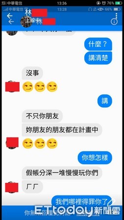 警方調查發現,林姓男大生就讀基隆一所大學,半年前以亂槍打鳥方式,在臉書邀請不特定國中、國小少女加入好友,再用聊天功能提出「互相自慰」要求,被拒後竟惱羞成怒,恐嚇「你逃不掉」、「我知道你讀什麼學校」、「你朋友的朋友都在計畫中」,甚至將自己自慰的影片傳給對方進行騷擾。