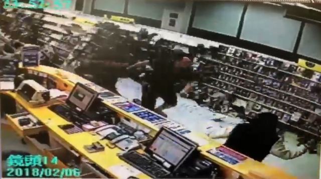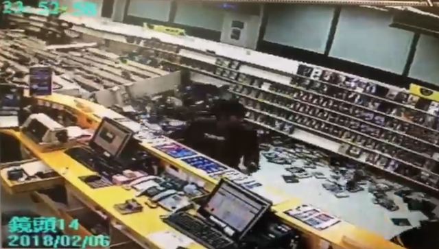 剛才,網路上流傳一段監視器畫面,地震當下有3位客人在DVD店裡,他們先是站不穩跌向櫃台,旁邊的DVD架也不堪搖晃,朝客人的方向傾倒,把他們嚇得摔倒到鏡頭邊緣,店員更是拔腿狂奔逃出店裡,畫面相當驚駭。