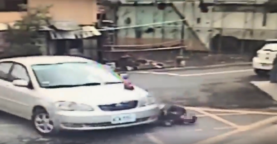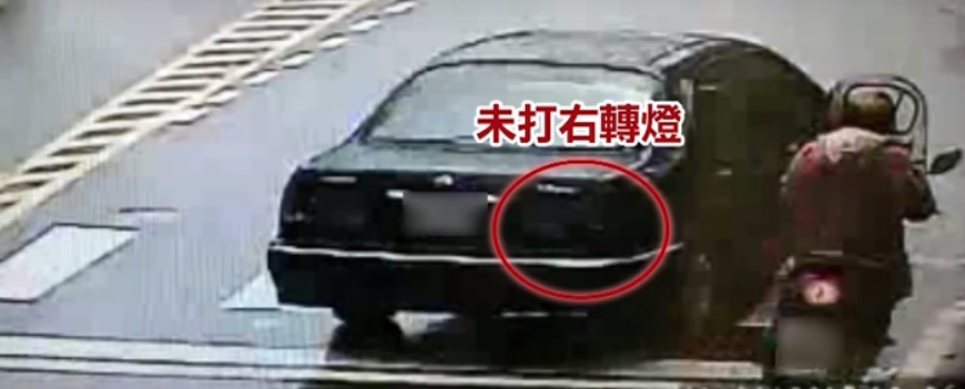 這起汽車肇事逃逸的車禍就發生在新北市汐止區的康寧街上,機車倒地後被民眾抬起,但是車殼上面已滿是刮痕,仔細看當時車禍的影像,發現肇事駕駛當時根本沒有打右轉燈就直接右轉,再加上在轉彎前,機車疑似進入到A柱死角,駕駛沒發現才會造成車禍。