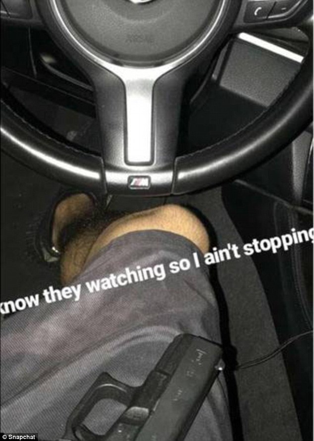 ▼梅薩在社群網站炫耀槍枝,表示「我知道他們看著,所以我更不會停止。」(圖/翻攝自《每日郵報》/Snapchat)