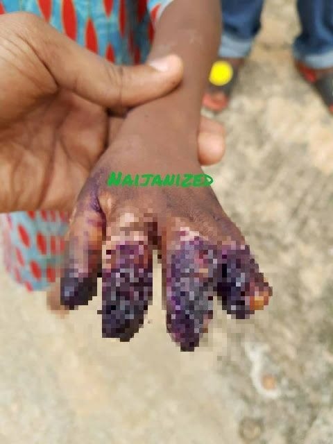 虐待!西非一名小女孩因為偷吃麵,雙手竟被