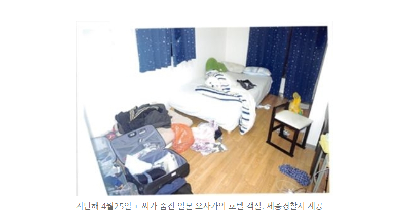 根據南韓《中央日報》報導,去年4月,22歲的禹姓男子,帶著19歲、新婚10天的妻子到日本大阪蜜月旅行。男子突然緊急報案,聲稱妻子因為憂鬱症,在廁所自行注射高濃度的尼古丁溶液,自殺身亡。日本檢警相驗過後,確認妻子血液內尼古丁含量過高,加上現場沒有打鬥痕跡,因此以自殺結案。