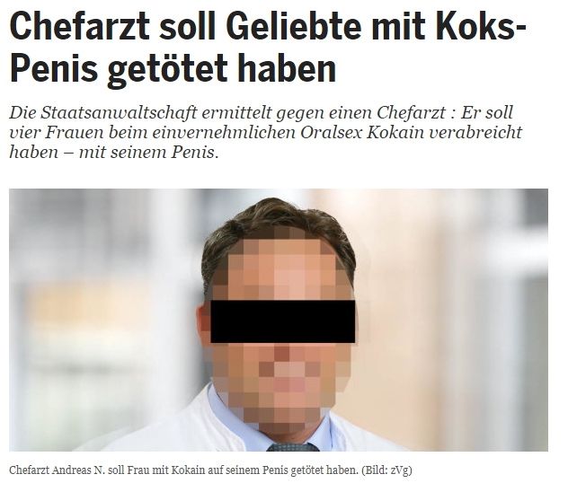 HEUTE》報導,現年42歲的醫師安德烈亞斯(Andreas),在今年2月時上交友網站約一名女子到診所發生性關係,並趁著女子不注意,在生殖器上塗抹毒品、興奮劑,再與其發生關係,沒想到,這次卻玩出人命,女子突然休克倒地,送醫急救後仍宣告不治。