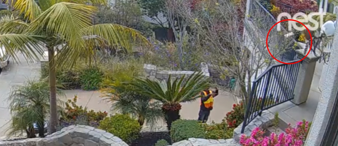由屋主提供的影片可以看見,這名送貨員走到門前就將包裹奮力丟上二樓,不過第一次丟擲失敗,包裹撞上欄杆後又掉了下來,於是他拾起包裹又丟了第二次,終於成功將包裹丟至陽台。
