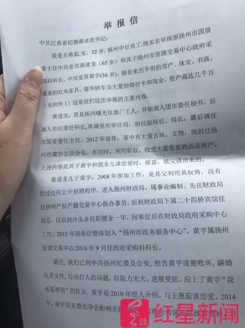 復仇前在銀行上班,2010年結識了揚州市前國資委主任黃道龍的兒子後,她認為對方是個公務員,又相當老實,便答應追求和黃男交往,沒想到黃男卻在2015年帶妹上賓館開房間,被王女抓個正著,王女當時心軟原諒對方,之後更決定在2017年10月和黃男結婚,直到2017年7月,王女被黃男毆打到警局作筆錄,才意外揭穿黃男「已婚」的身分,此時王女終於清醒,認知到自己被黃男王玩弄了7年。