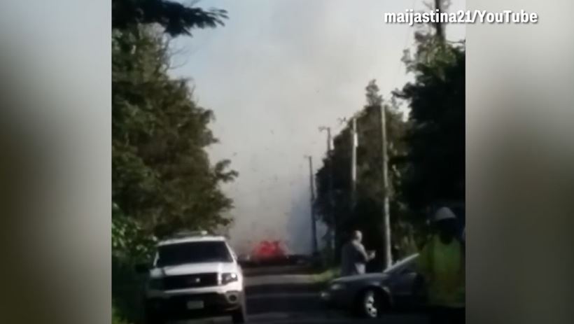 夏威夷民眾的空拍機拍下,自家社區的道路竟然被火紅岩漿充滿,整條莫哈拉街都是熔岩湧流。一名安全撤離的女子拍下這段影片,岩漿不斷從馬路的裂縫中噴出,從馬路的另一邊更能夠看到,火紅滾燙的岩漿不斷噴發,漸漸溢滿馬路。