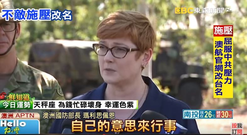 北京當局要求國際航空公司更改台灣名稱,又有一家公司擋不住壓力,澳洲最大的澳洲航空決定更改官網,將台灣列入中國地區,澳航執行長還把責任推給澳洲政府。
