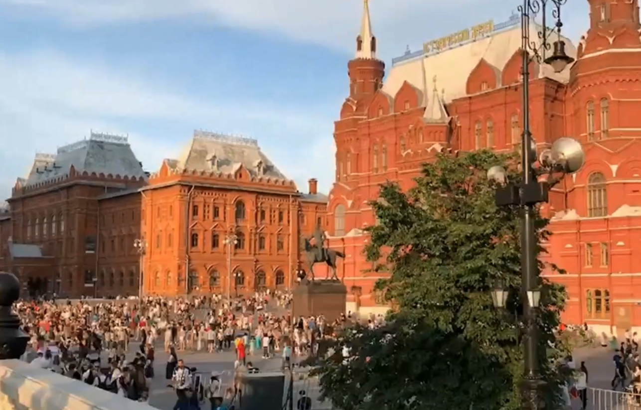 舉著國旗邊跳邊喊,他們是這次世界盃各國球迷,從世界各地湧進主辦城市莫斯科,不管男女不管年紀,大家見面互相打招呼,讓莫斯科成了歡樂城。