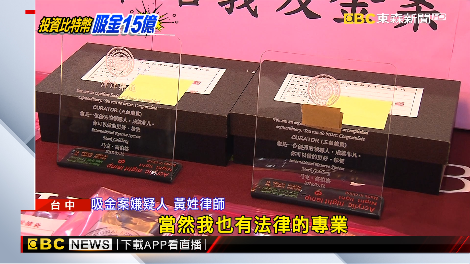 台中檢調偵破史上規模最大的比特幣吸金案,林姓男子跟范姓男子打著「IRS國際 儲備集團」名義,以販售RM(儲備金)轉投資比特幣,每日固定增值0.35%,放著 一年不提領,就能拿回355%的本利和,吸引律師、醫師等高知識份子投資,短短9個月就吸金超過15億,有上千人受害。