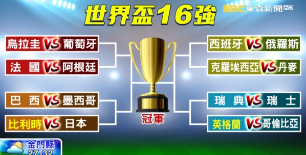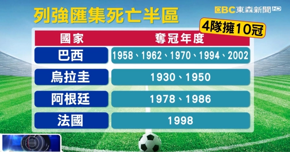 包含巴西、烏拉圭及阿根廷及法國等,都曾經在世界盃奪冠,其中巴西5次抱走金盃也是目前各國最多,而這4支球隊合計就拿了多達10次冠軍,也佔了全部比賽的一半,反觀另一邊只有西班牙曾經奪冠,而地主國俄羅斯更是第一次晉級16強。