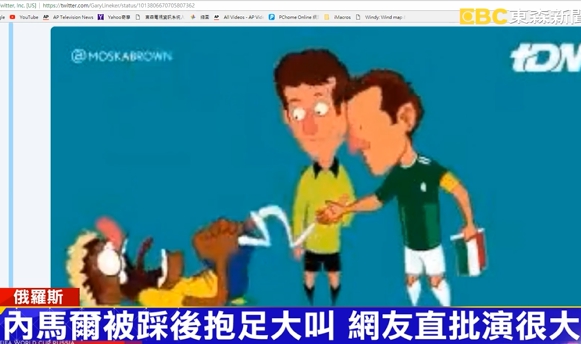 內馬爾被犯規後倒地不起,不過下不久前,他的反應卻讓網友忍不住批評,他真的演很大。墨西哥球員,只是不小心,稍微踩到他的腳踝,就連腳尖都沒有壓下,內馬爾誇張的反應,連英國退役名將克因萊爾,都忍不住在推特上,酸他是世界盃開始統計數據後,痛點最低的球員,網友更是製作了各種動圖諷刺內馬爾,有人用動畫嘲笑他是被氣功砲打到,也有人說他光是握手都會受傷,甚至有人用動物,受到驚嚇倒地的畫面來揶揄他。