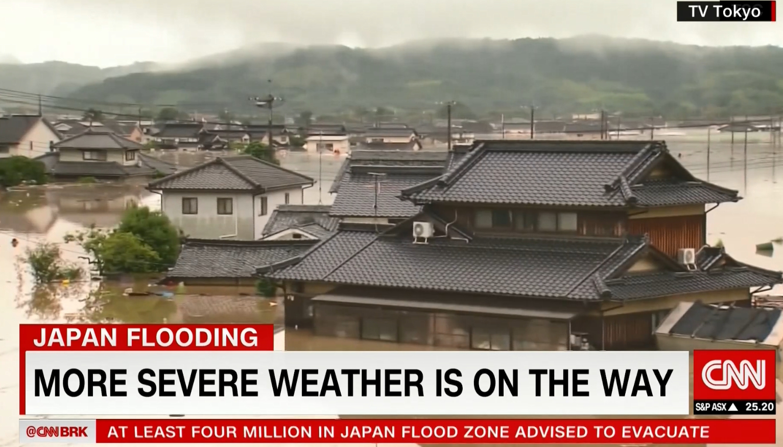 CNN主播:「水氣將會往北到日本,很不幸地將會提升這些地區的降雨量,當然不會那麼多,不過再只要一點點就會造成傷害。」由於土壤水份已經飽和,就算是一點點降雨也會造成嚴重影響,就像安倍晉三在記者會上所說的,整個救援行動將會是一場和時間的賽跑。
